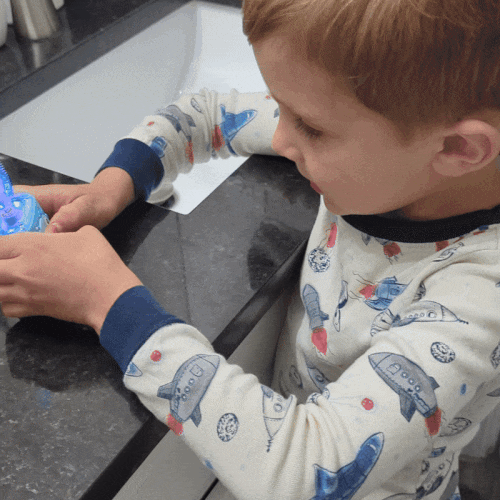 Votre enfant pourra tester les trois modes de nettoyage et minuteur + nos lumières LED bleues amusantes (et fonctionnelles!)